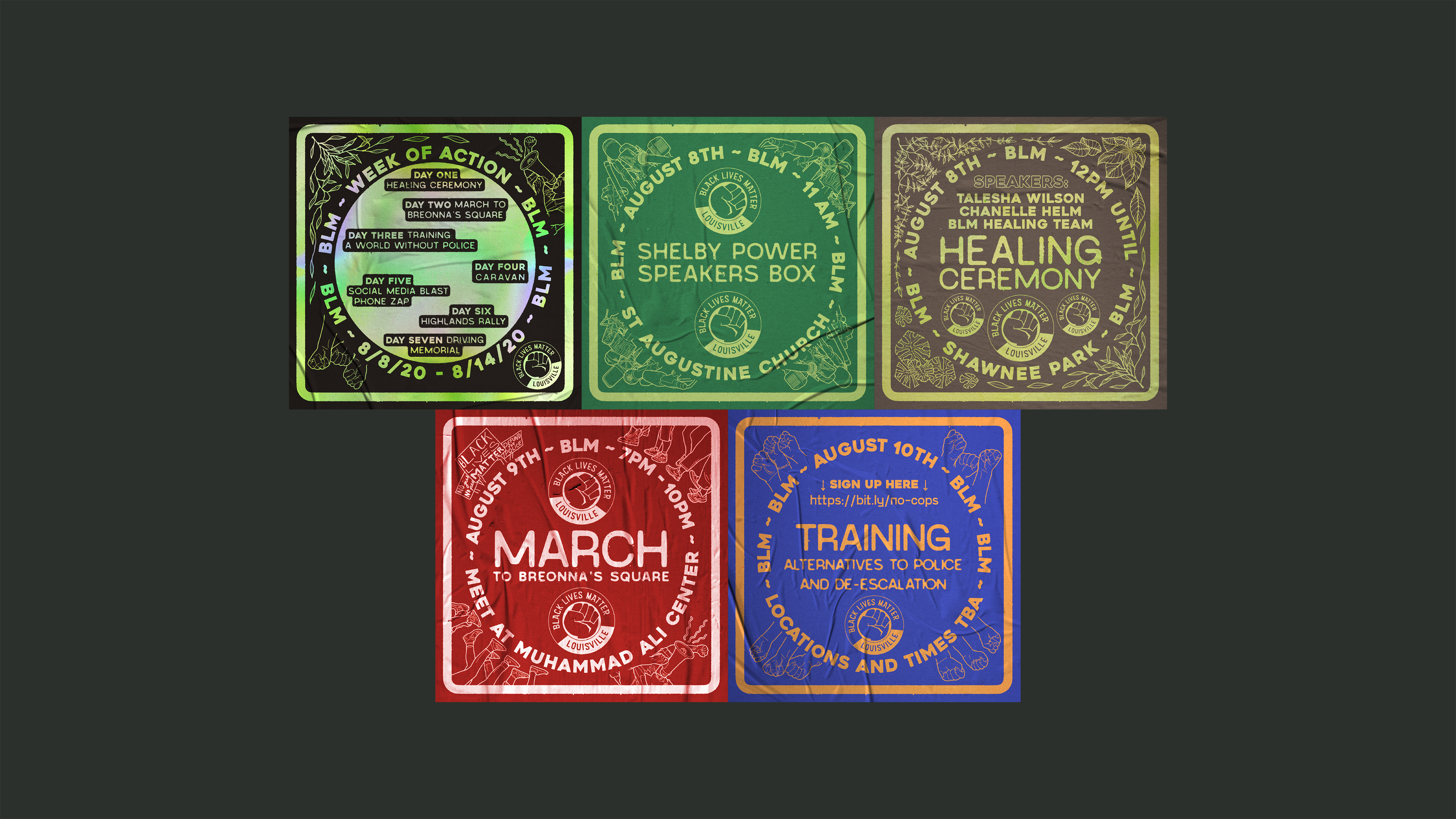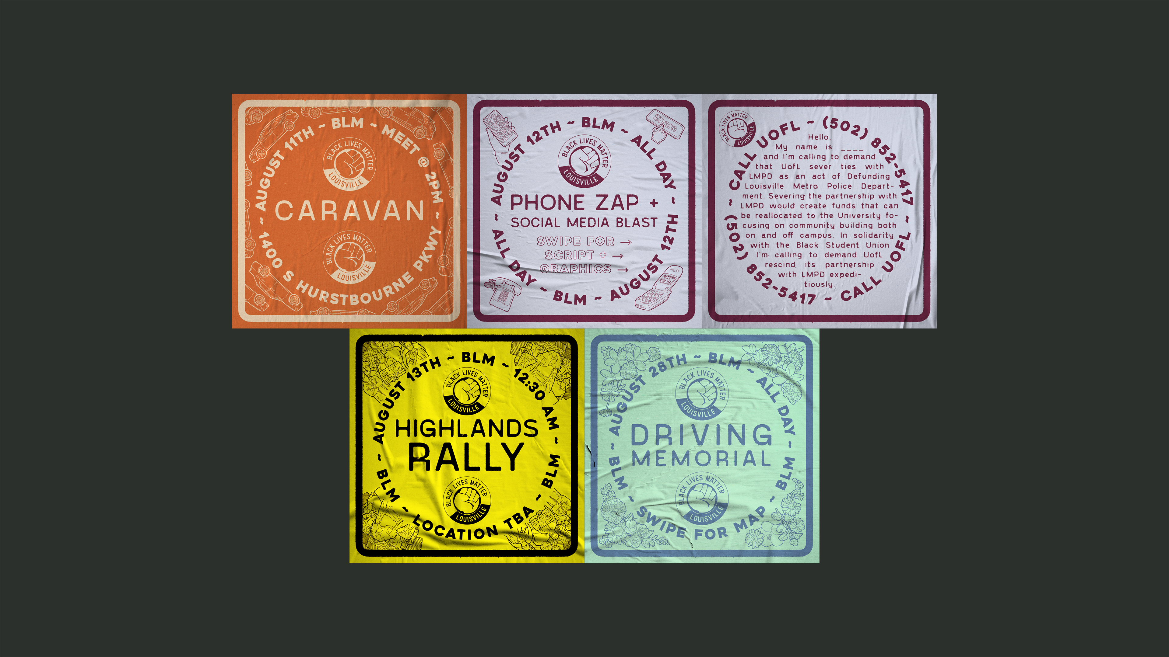 flyers for Louisville-based activist group